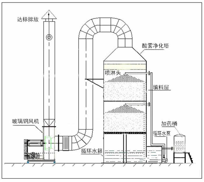 用于垃圾場(chǎng)除臭,除臭洗滌塔適用于密封型的垃圾卸料大廳,大規(guī)模滲瀝液調(diào)節(jié)池等臭氣濃度較高的空間噴淋塔是由塔體旋流板噴淋裝置除霧層等組件組成的,粉塵煙氣在風(fēng)機(jī)的作用下,進(jìn)入噴淋塔,此時(shí)噴淋裝置向下均勻地噴灑出水,水與粉塵煙氣集合,并沉淀到水池里,達(dá)到凈化的作用干凈的空氣向上運(yùn)動(dòng),通過除霧層,去除多余的水分,而后達(dá)標(biāo)排放。